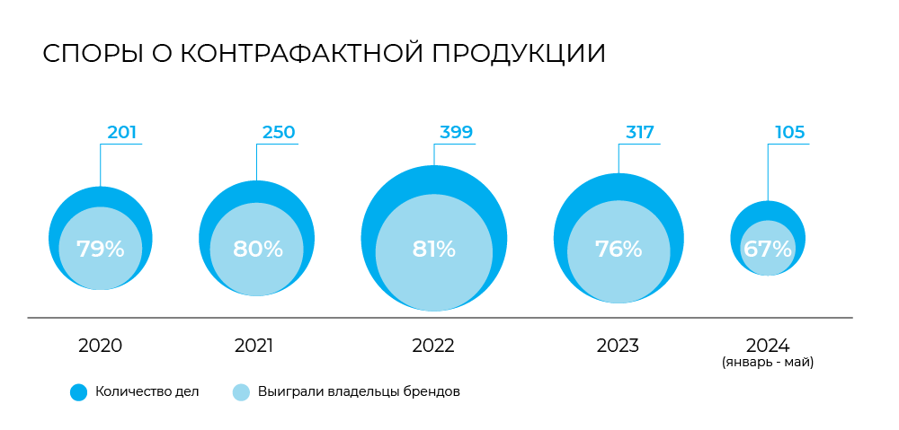 Анализ судебной практики* показывает, что за последние четыре года число споров о контрафактной продукции выросло в полтора раза. Наиболее популярная категория дел в этой сфере — о защите исключительных прав на товарные знаки. Среди компаний, которые чаще всего участвуют в подобных разбирательствах, ритейлеры встречаются крайне редко как среди истцов, так и среди ответчиков.